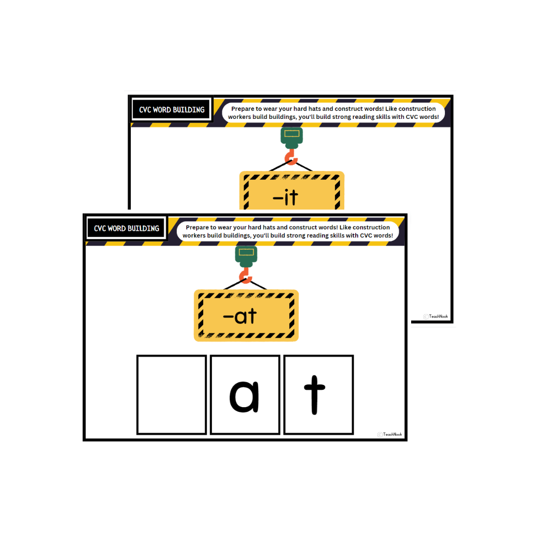 Get ready to build words with our Construction CVC Word resource! Dive into the world of CVC words as students become construction workers, assembling words like they're building a sturdy structure. With engaging tools and colourful materials, they'll lay the foundation for reading success one letter at a time. Let's construct literacy skills together!